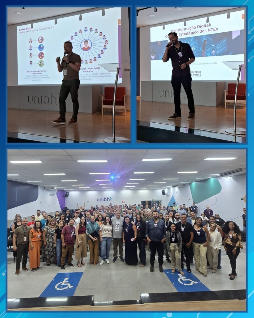 Representando a regional, estiveram presentes Sabrina Neves, coordenadora do Núcleo de Tecnologias Educacionais (NTE) da SRE Nova Era, Josiane Dias, técnica pedagógica do NTE, e Alice Espíndola, analista educacional. Durante o evento, as participantes acompanharam formações, oficinas e momentos de troca de experiências com profissionais de diversas regionais, fortalecendo a articulação entre tecnologia, inovação pedagógica e práticas educacionais na rede estadual.